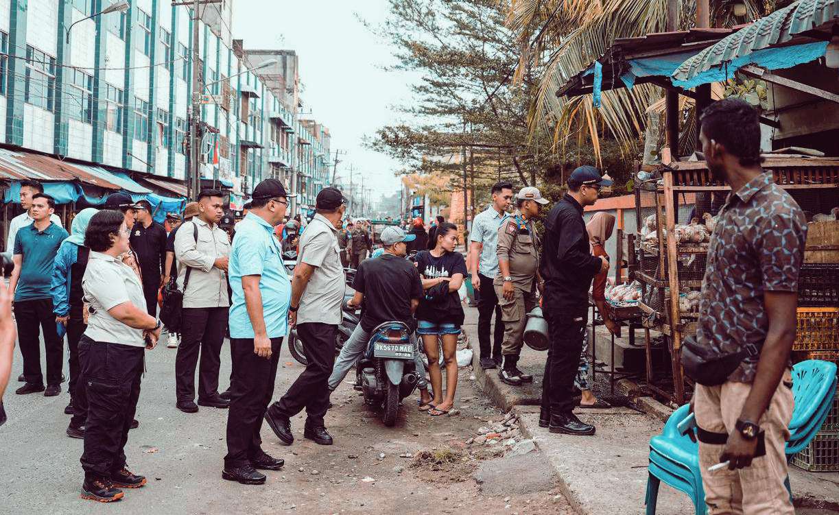 Usai apel, Bupati meninjau gotong royong di kawasan Pasar III. Kepada para pedagang, Bupati sosialisasikan imbauan agar tidak berjualan di atas trotoar dan menyarankan untuk memanfaatkan relokasi yang telah disediakan di Pasar Bakaran Batu.