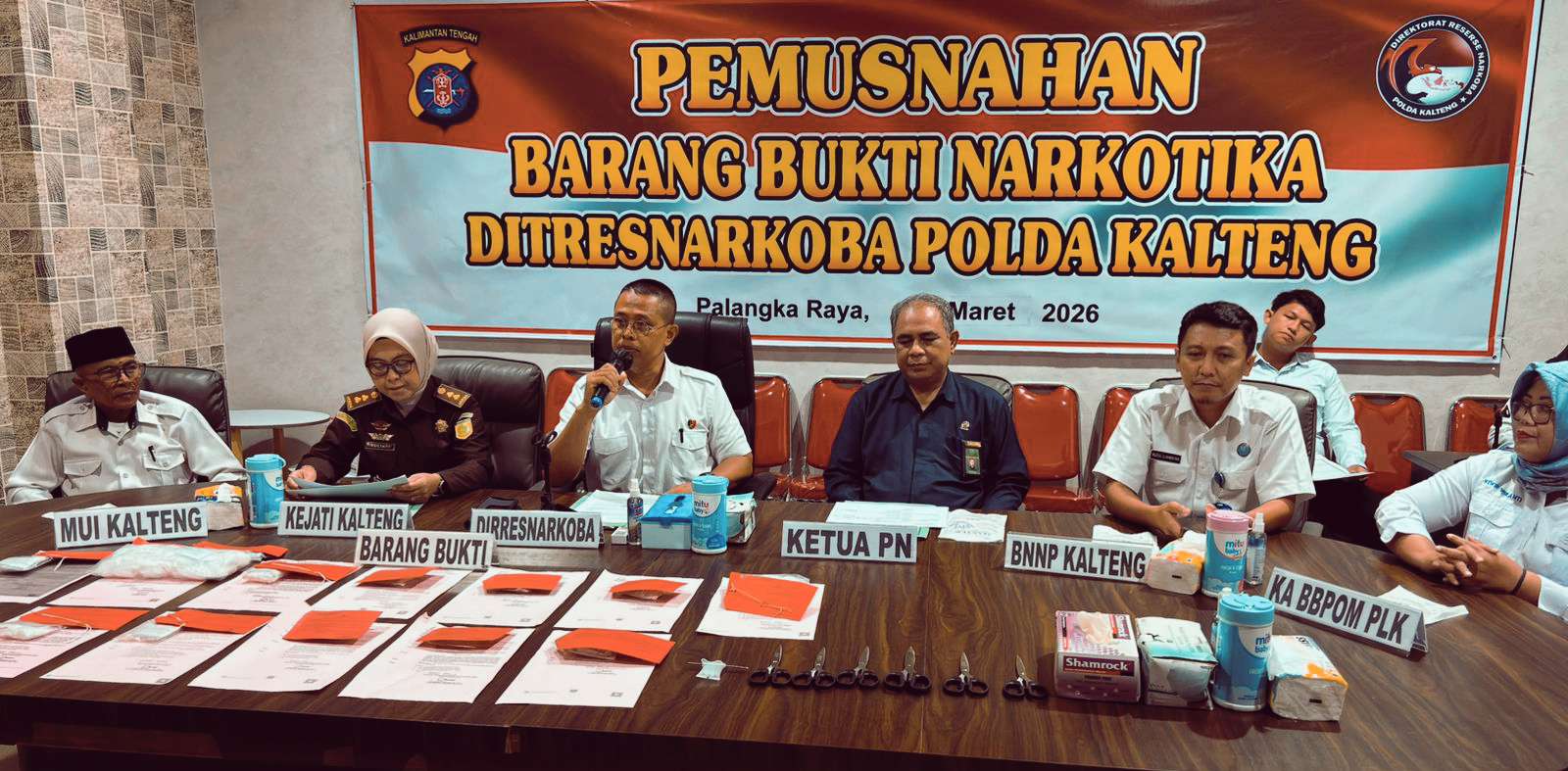 Pemusnahan dilakukan pada Rabu (4/3/2026) pukul 10.00 hingga 11.00 WIB di Ruang Rapat Ditresnarkoba Polda Kalteng, Jalan Tjilik Riwut Km 1, Palangka Raya, yang diwakili Direktur Reserse Narkoba Polda Kalteng Kombes Pol. Slamet Ady Purnomo atas nama Kapolda Irjen Pol Iwan Kurniawan.
