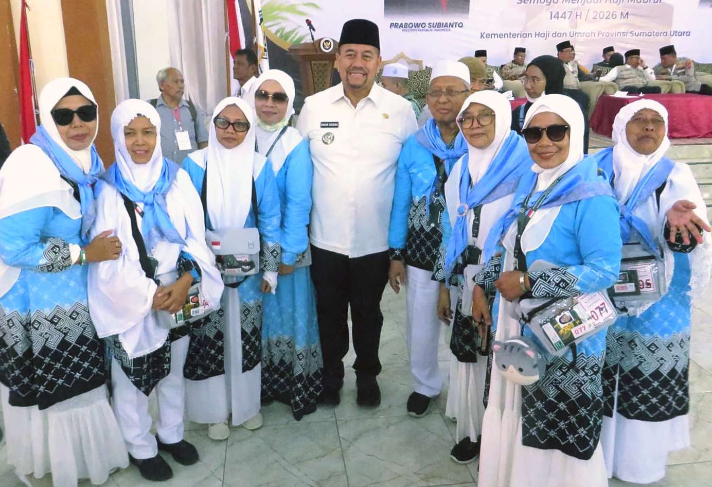 DATAPOST.ID MEDAN – Bupati Batubara, Baharuddin Siagian bersama Kepala Kantor Wilayah Kementerian Haji dan Umrah Sumatera Utara, Zulkifli Sitorus secara resmi melepas keberangkatan 360 jemaah haji dan petugas haji Kloter 4 Embarkasi Medan. Prosesi berlangsung di Asrama Haji Medan, Sabtu (25/4/2026) sekira pukul 10.00 WIB, sebelum rombongan melanjutkan perjalanan menuju Bandara Kualanamu.