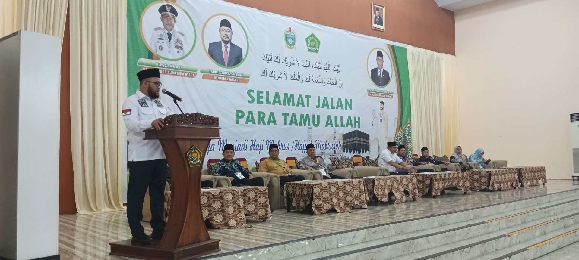Diakhir sambutannya, Dedi Iskandar Batubara mengucapkan selamat jalan semoga Allah SWT memelihara dan menjaga Tamu Allah, doakan kami yang ditinggal, semoga kita kembali lagi di tempat ini dengan predikat haji mabrur.