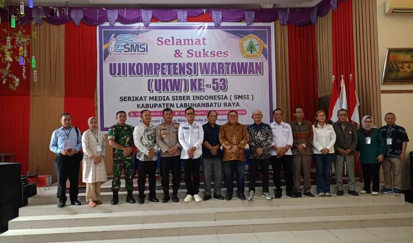 RANTAUPRAPAT II DATAPOST.ID – Uji Kompetensi Wartawan (UKW) Angkatan 53 atas kerja sama Serikat Media Siber Indonesia (SMSI) dan LUKW Universitas Prof Dr Moestopo (UPDM) Jakarta, resmi digelar di Permata Hall, Rantauprapat, Kabupaten Labuhanbatu, Jumat-Sabtu (22-23/11/2024).