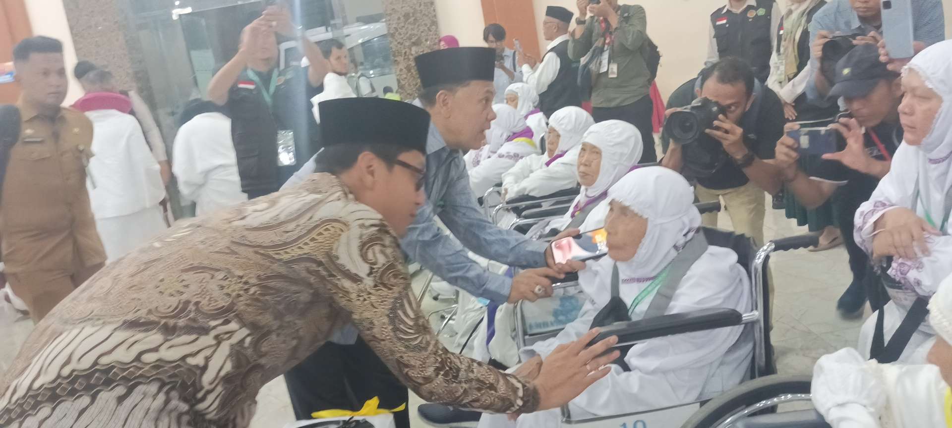 Kedatangan Wali Kota Medan Rico Waas disambut Ketua PPIH Embarkasi Medan, H. Ahmad Qosbi Nasution, S.Ag., MM, Wakil Bupati Tapanuli Tengah Mahmud Efendi Lubis, Asisten Pemerintahan Pemko Medan H. Sofyan, Kepala Kantor Kementerian Agama Kota Medan H. Impun Siregar, Kakankemenag Kabupaten Tapteng dan Kabag Tata Usaha Kanwil Kemenag Sumut HM Yunus, MA untuk sesi foto bersama ratusan jamaah calon haji Kloter 21.