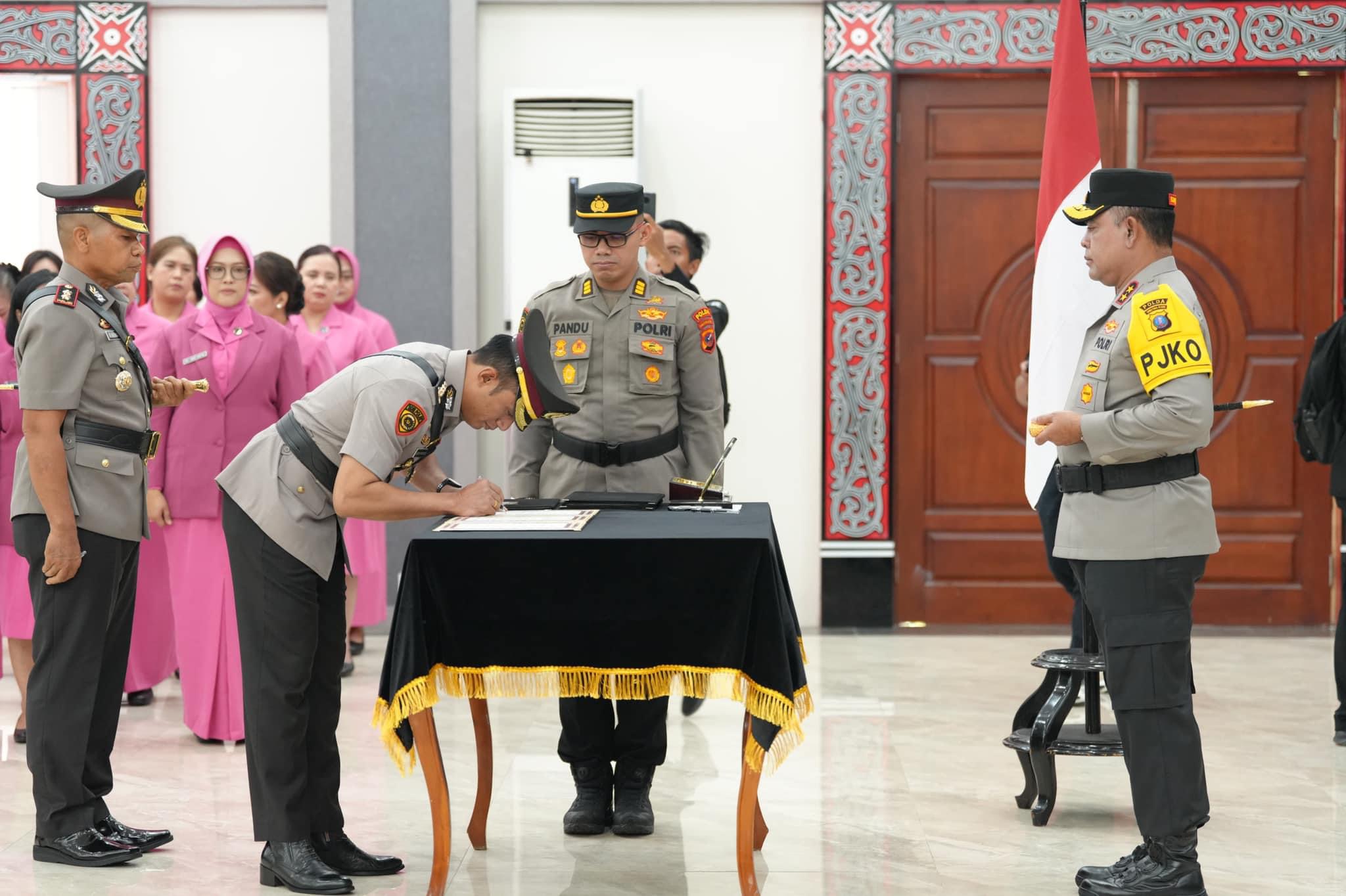 Pelantikan dan serah terima jabatan (sertijab) yang digelar di Aula Tribrata Markas Polda Sumut dihadiri Wakapolda Sumut Brigjen Pol Rony Samtana, para Kapolres jajaran dan Pejabat Utama (PJU) Polda Sumut, Senin (07/10/2024).