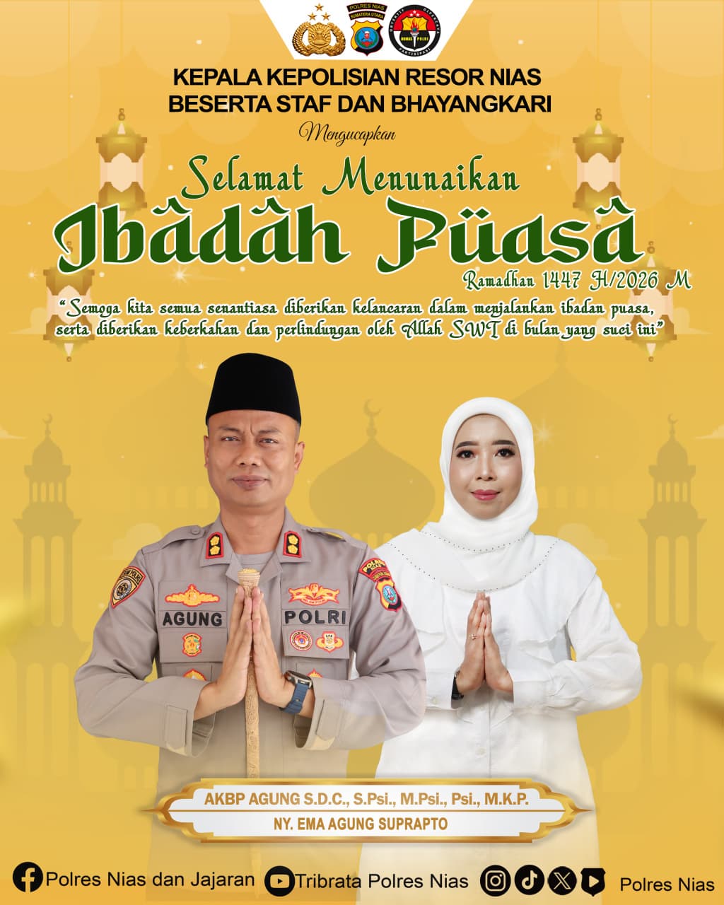 Datapost.Id, Gunungsitoli – Kepala Kepolisian Resor Nias beserta Staf dan Bhayangkari mengucapkan Selamat Menunaikan Ibadah Puasa Ramadhan 1447 H / 2026 M