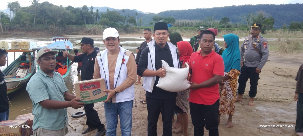 Sesuai Instruksi Presiden, Gerindra Madina Tembus Daerah Terisolir 4 Jam Naik Perahu ke Desa Terdampak Banjir