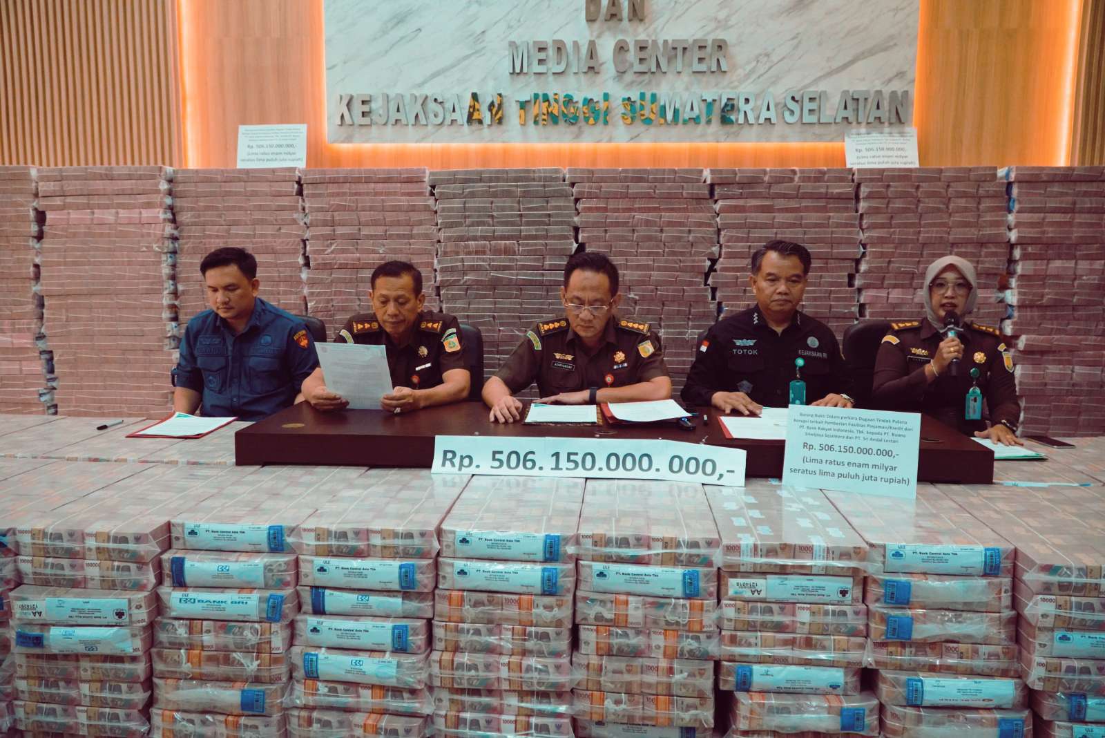 Pada Kamis (07/08/2025) Tim Penyidik Pidsus Kejati Sumsel berhasil menyita barang bukti uang tunai sebesar Rp 506.150.000.000 (lima ratus enam miliar seratus lima puluh juta rupiah) dalam pecahan Rp 100.000.